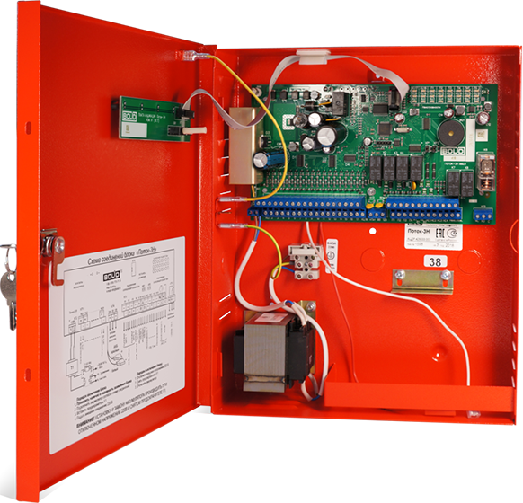 Может управлять технологическим оборудованием (вентиляция, лифты и т.д.) при помощи встроенного реле